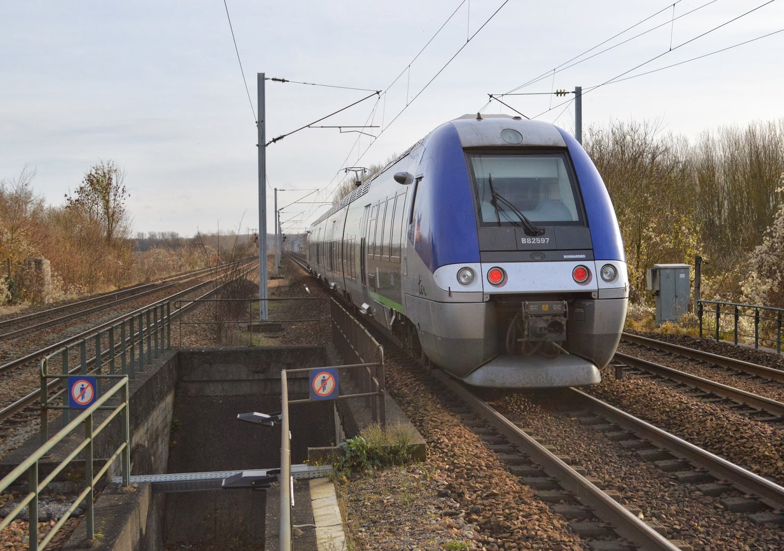 Ici, le B 82597 quitte la gare en direction de Tergnier.....