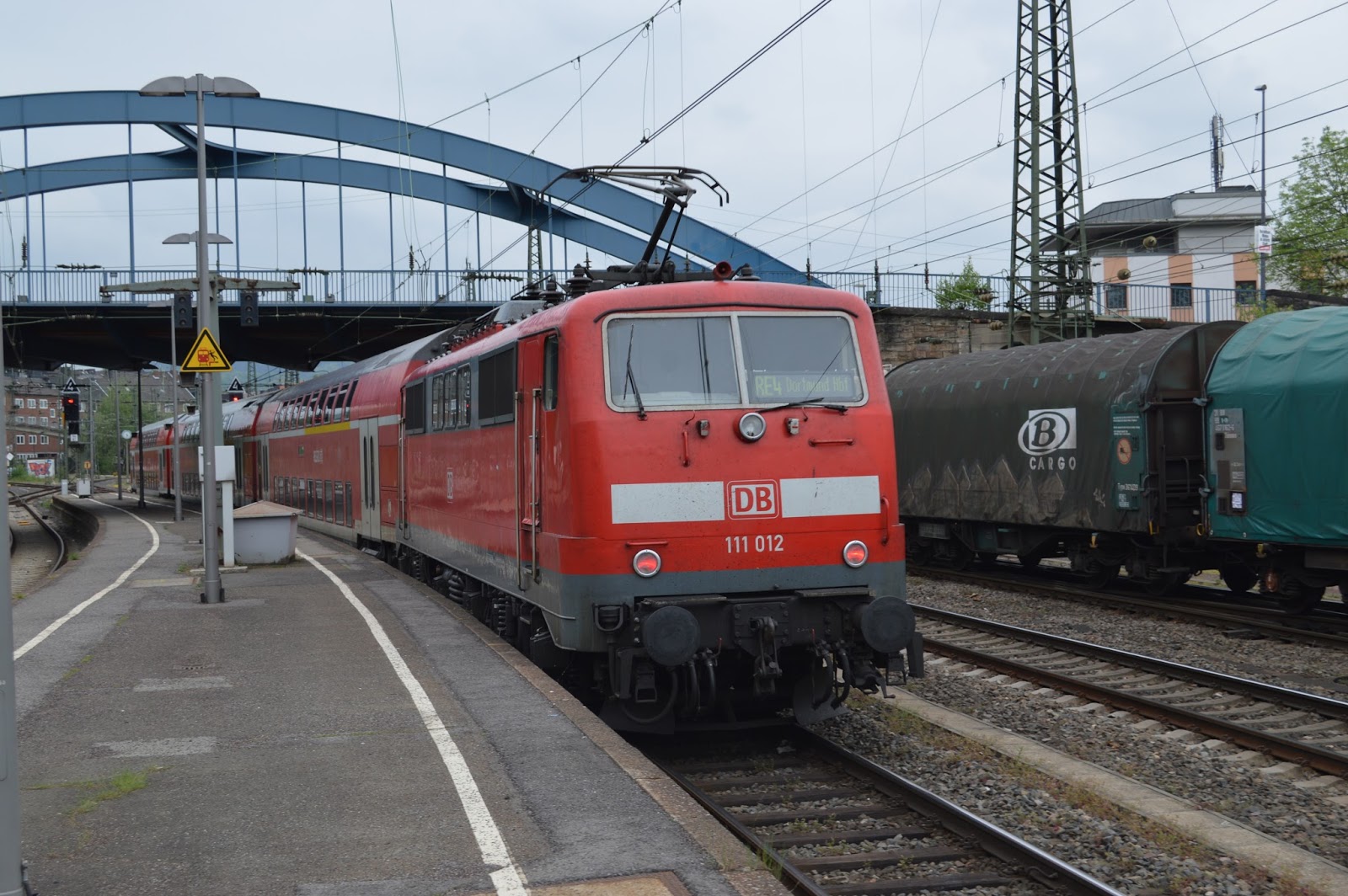 ... pour laisser passer la rame 2 niveaux avec la 111 012 en pousse.