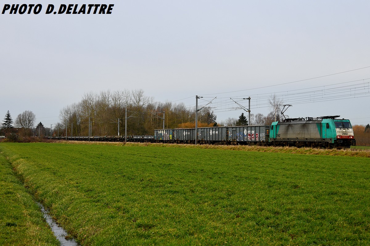 cette fois avec une Traxx verte la 2902 photographiée à Tressin entre Ascq et Baisieux au niveau de l'ancien PN12, le signal visible au fond de la photo est encore à l'avertissement il vient de croiser le TER fantôme le 19922 avec l'AM96 0461 !!
