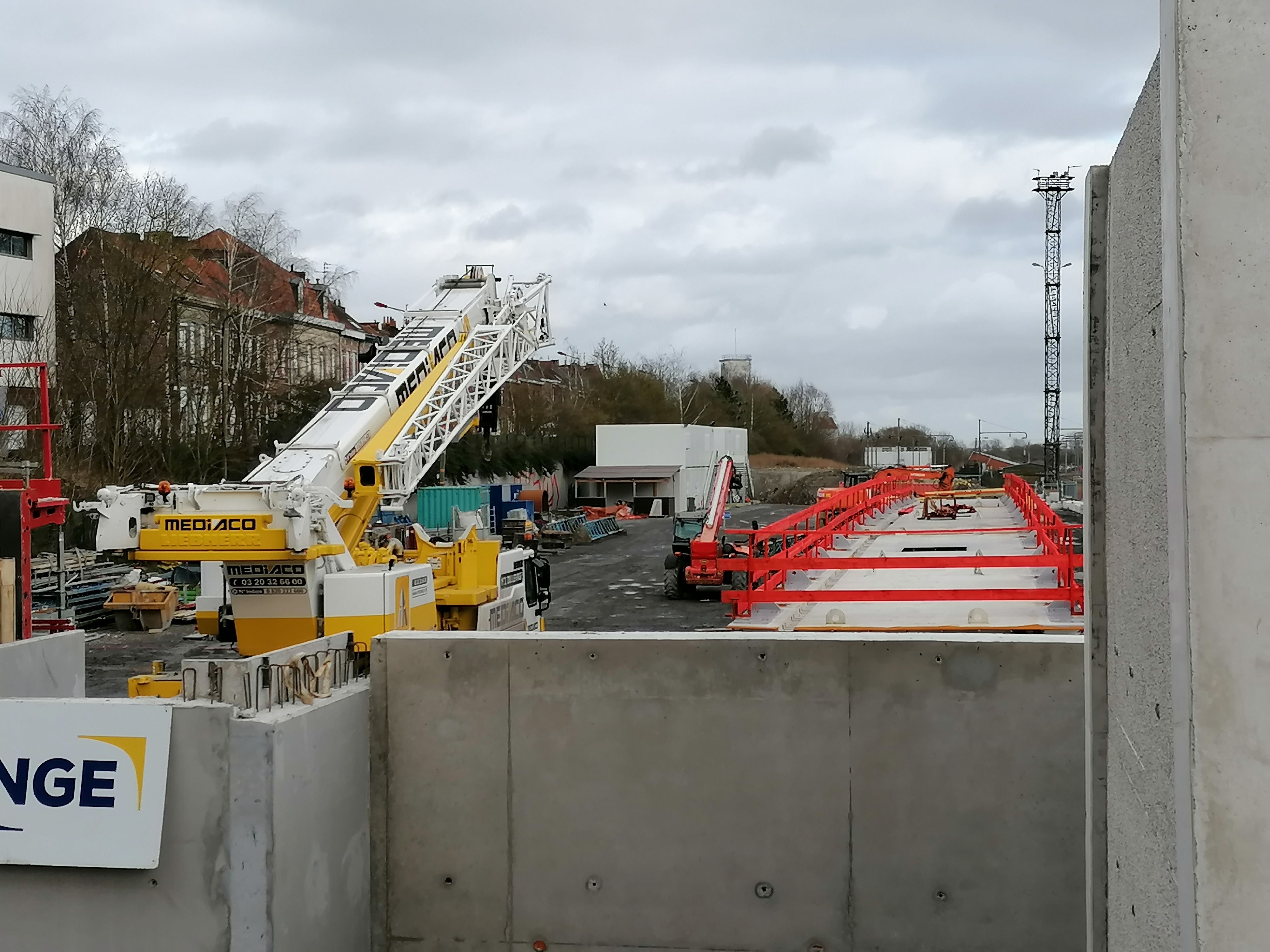 la rame de containers visible derrière le béton ,