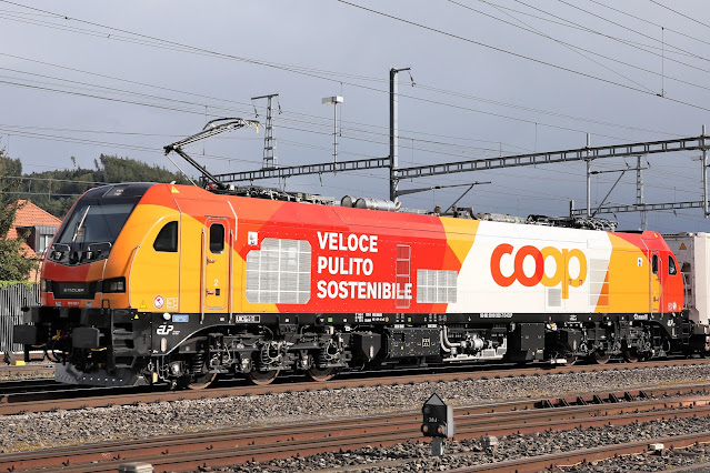 Ce Jeudi après-midi, je suis allé à Ostermundigen en espérant de voir une des EURO 9000 COOP. La première surprise était une FLIRT EVO CFF. Avec un peu de retard arrive le premier train railCare avec une EURO 9000. Une deuxième heure plus tard le deuxième train depuis Brigue est également tracté par une EURO 9000.