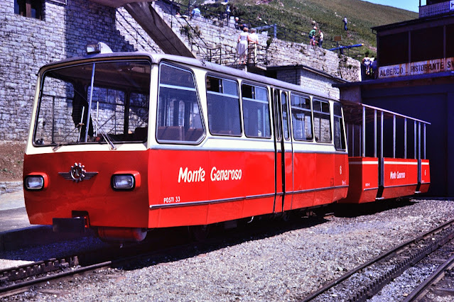 Dans le cadre d’un mandat j’étais deux jours au chemin de fer du Monte Generoso. Cette ligne crémaillère ouverte en 1890 relie le Lago di Lugano à Generoso Vetta à la frontière italienne. La ligne mesure 9 kilomètres et a un dénivelle de 1328 m avec de rampes maximales de 220 ‰. Le chemin de fer a régulièrement eu des problèmes financiers au début des guères du siècle passé. En 1914 l’entreprise fait faillite et elle est recrée avec des nouveaux fonds en 1916. En 1939 l’exploitation est arrêtée et l’espoir de revoir des trains circuler n’est pas grand. En 1941 il est prévu de démonter l’infrastructure pour récupérer le métal qui est denrée rare durant la deuxième guerre mondiale. Le fondateur de la Migros, Gottlieb Duttweiler, se décide spontanément d’acheter le chemin de fer et fonde ensuite une coopérative. Aujourd’hui le chemin de fer du Monte Generoso est toujours propriété de la Migros. Jusque dans les années 1950 des locomotives à vapeur ont assurée les trains. En 1953/1954 deux locomotives à vapeur ont été transformées en locomotives diesel. En même temps deux automotrices diesel ont été commandées chez SIG. Avec leur arrivée en 1957 la traction à vapeur est définitivement remplacée. En 1967/1969 deux automotrices plus petites augmentent le parc. En 1982 l’exploitation bascule à la traction électrique avec 800 V cc. La commande des automotrices électriques doubles est jumelée avec celle des Rochers-de-Naye.