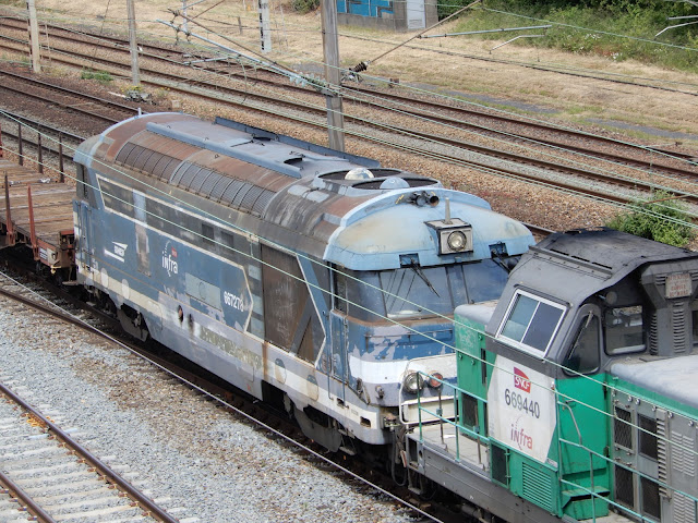 BB75075 Fret + BB27321 Réseau + BB75098 Infra + rame V venant d'Achères.