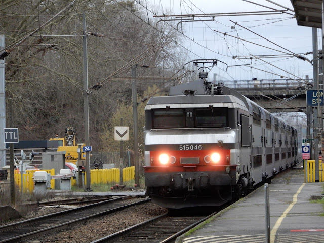 14h39 2 vues de cette V2N poussée par BB15046R Paris-Nord - St-Quentin